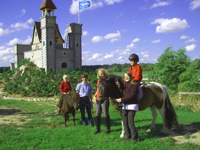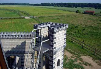 Auf einer großen Spielwiese befindet sich eine lebensecht große Ritter-Kinderspielburg, aus Stein erbaut, mit Schlafmöglichkeiten in echten Ritterkojen.