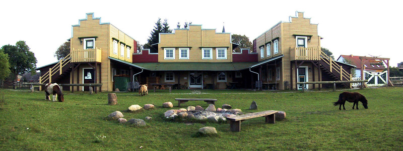 Neben unseren vielen Hoftieren gibt es auch eine urige Westernstadt mit Longhorn-Saloon und Lagerfeuerstelle,